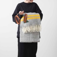 ブランケット ニーラグ 70x183cm フィッシュボーン 2ストライプ グレー イエロー ストール / Fishbone 2 Stripe Grey Yellow Knee Rug